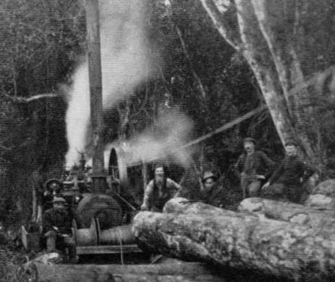 This was one of the five steam sawmills then at work in the 3,000 acres of native forest that once stretched from the foothills to the site of the present town."