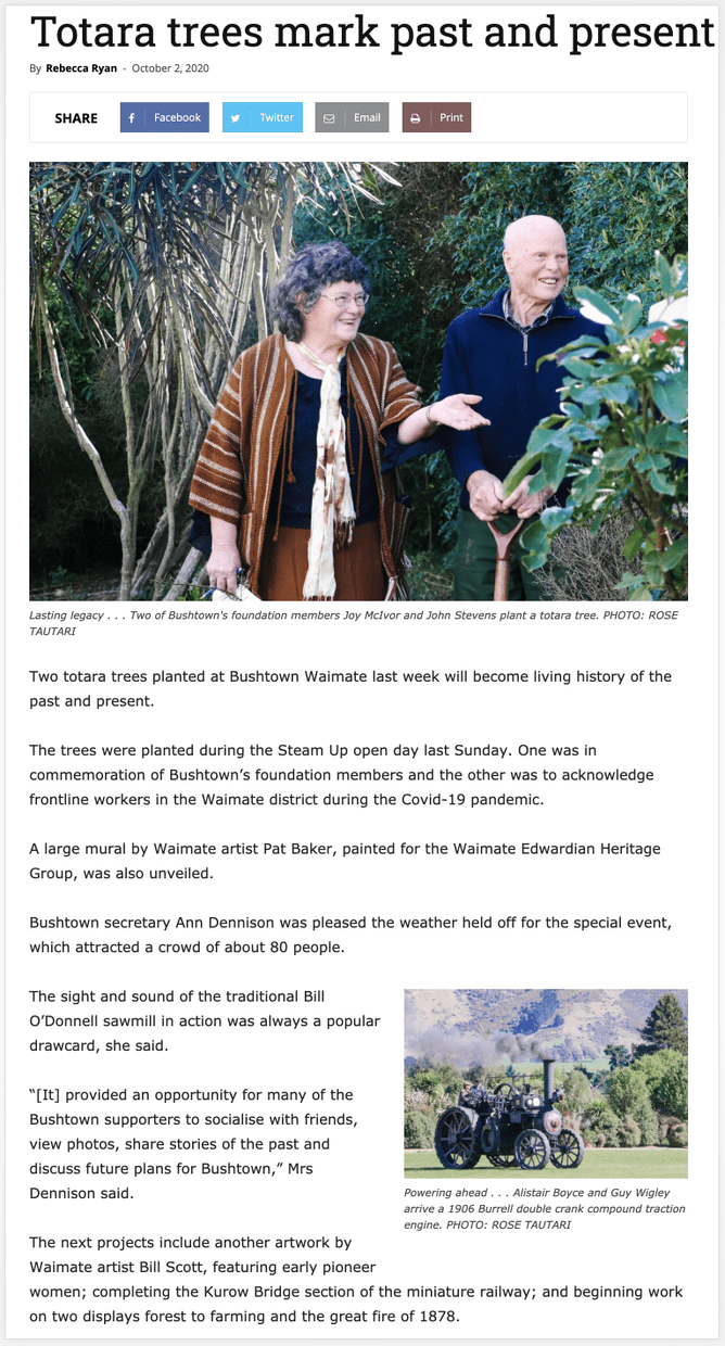 In The News! The Oamaru Mail - Bushtown Open Day - October 2020