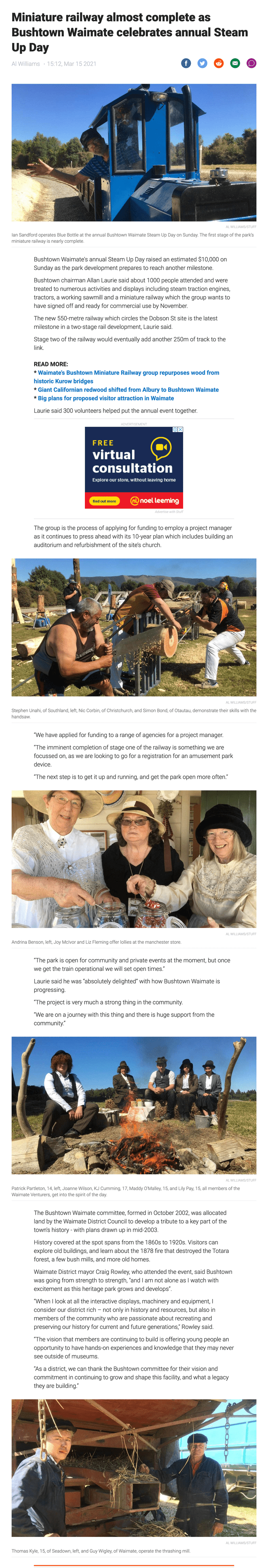 In The News! The Timaru Herald/Stuff - Steam Up Day 2021