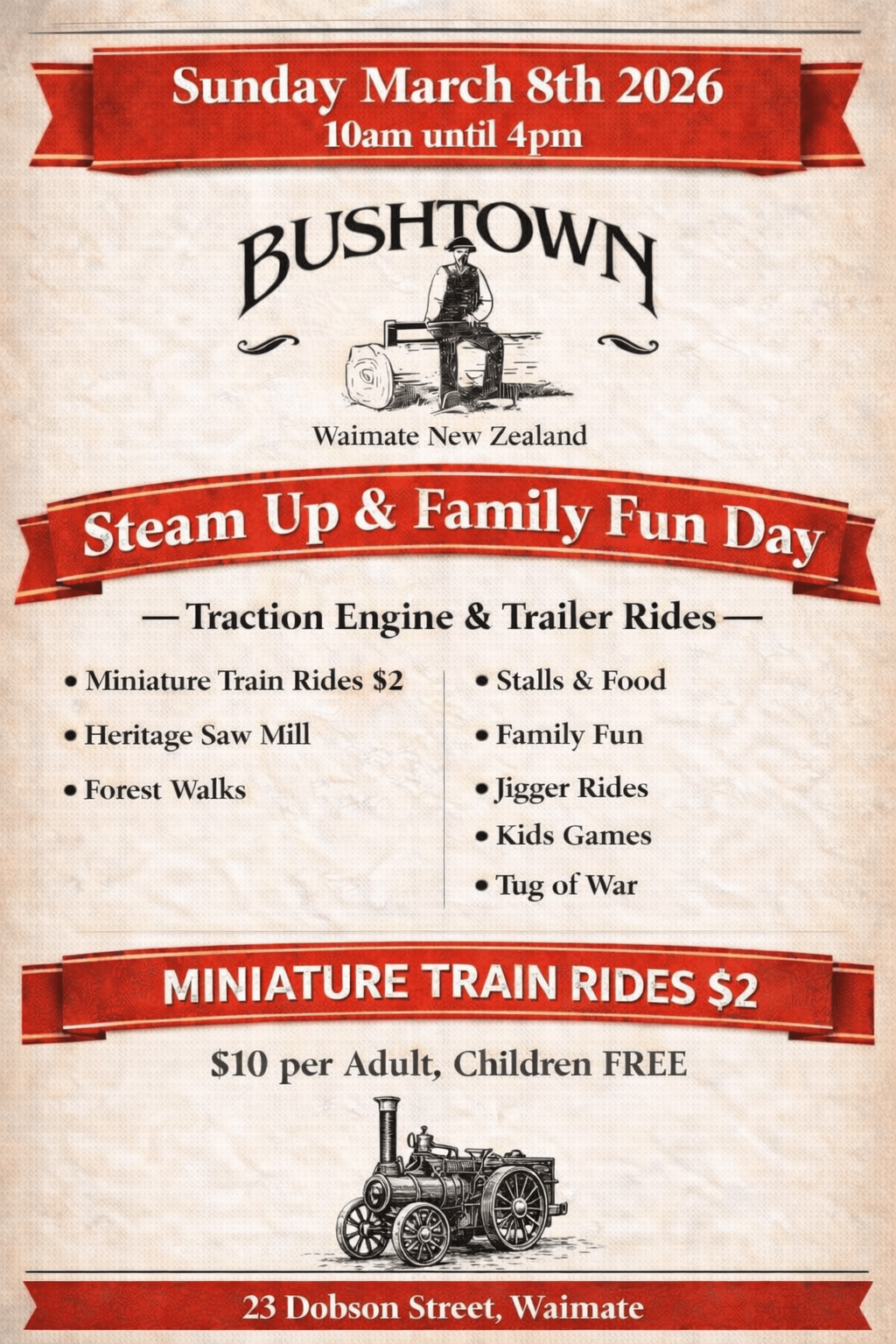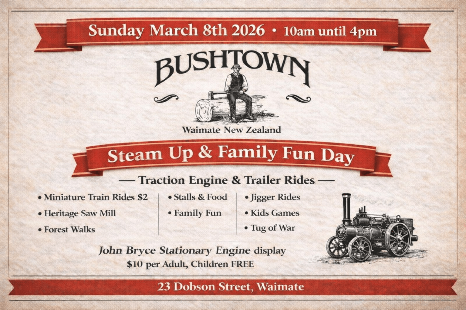 A special thank you to the South Canterbury Traction Engine and Vintage Steam Club and the Waimate Museum for supporting our annual Steam Up events!